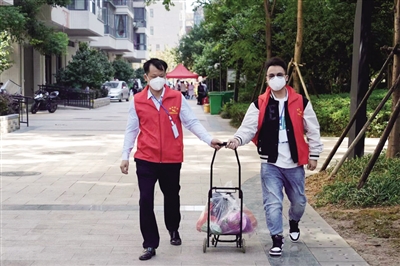 截至目前,已有200余名小区居民自发参与到志愿服务的队伍中,有年近六旬的老人,也有“00后”大学生,他们每天从清晨8点到晚上10点,值守在不同的转运点,轮番搬运物资,不知疲倦地奔走在小区内的各个角落,成为小区内一道靓丽的风景线。