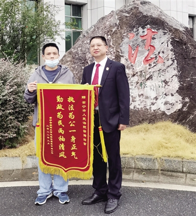衡阳晚报讯(文/图 通讯员 张婷)“多亏了你们啊,不然我都不知道该怎么办了!” 近日,当事人周某委托其父亲将一面锦旗送至常宁市人民法院,对承办法官公正、细致、热心的工作态度表示衷心感谢。