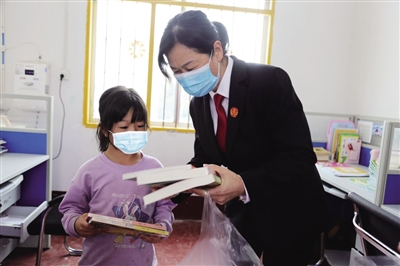 活动中,法院干警为小女孩送去了爱心助学金和崭新的学习用品,并和小女孩的爷爷、老师亲切交谈,详细了解了女孩的家庭生活及学习情况,并鼓励她要一直努力学习,争当新时代好少年。
