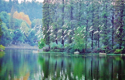 近日,成群的白鹭聚集在雁峰区南湖公园,时而直冲云霄,时而追逐玩耍,时而翻飞觅食,构成了一幅美丽自然生态画卷。近年来,南湖公园生态环境持续向好,吸引了大量的水鸟在此栖息繁衍。 ■衡阳晚报全媒体记者 周 围 摄