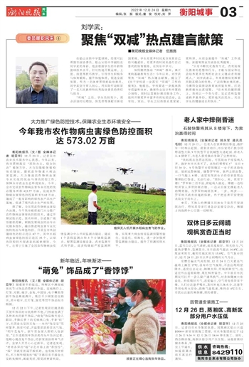 今年我市农作物病虫害绿色防控面积 达573.02万亩