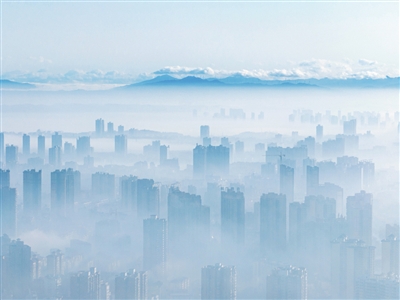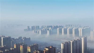 城市白茫茫一片如同天空之城。■全媒体记者 罗茂盟 摄