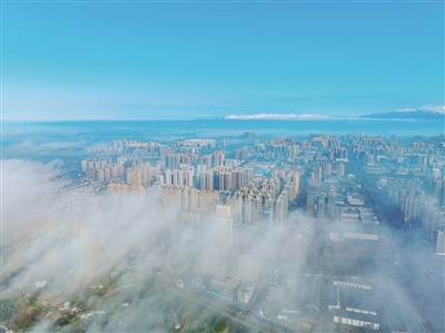“雾”入雁城,美若仙境。■全媒体记者 周 围 摄