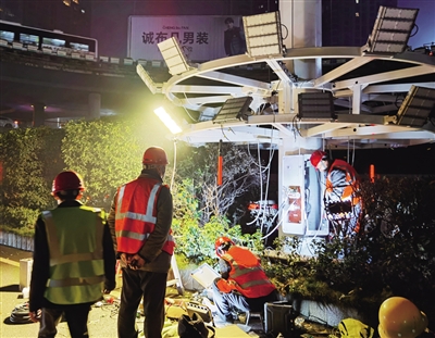 衡阳晚报讯 (文/图 全媒体记者 胡亚华 通讯员 唐韬) 1月15日夜晚,自广州驾车返乡过年的汤先生惊喜地发现,华新立交桥变得愈发亮堂起来,矗立在此的35米高杆路灯璀璨夺目,既扮靓了城市夜色,又确保了夜间出行安全。