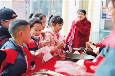 2月6日上午,高新区二塘小学举行了别具一格的“和你一起,‘美食’每刻”开学迎新活动。在美食体验区,学生们通过制作元宵、棉花糖等美食,感受到传统文化的无穷魅力。