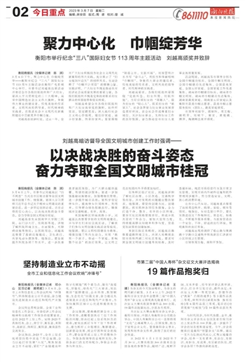 ~~~衡阳市举行纪念“三八”国际妇女节113周年主题活动 刘越高颁奖并致辞