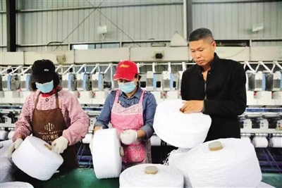3月16日,常宁市庙前镇西湖村鸿洁环保生产小车间创始人夏激光在车间了解工人生产情况。2021年,该村村民夏激光在驻村工作队的支持、帮助下,从广东返回家乡创业,投资220多万元开办环保建材厂,让1500多平方米的闲置乡村车间得到充分利用,年产值达900多万元。■通讯员 郭兴成 摄 |