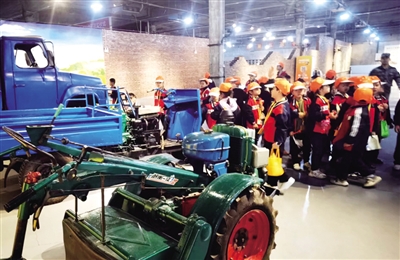在机械制造科普厅里,孩子们了解了四次工业革命及各个时期重要的科技发明,通过显示屏了解了中国制造世界领先的“国之重器”。孩子们还参观了TY290柴油机机体加工专用生产线。这款柴油机主要用于拖拉机和小四轮、小六轮农用车。见到建湘生产的拖拉机和小六轮农用车,孩子们欣喜若狂,还忙着叫摄影师给他们留下精彩的瞬间。
