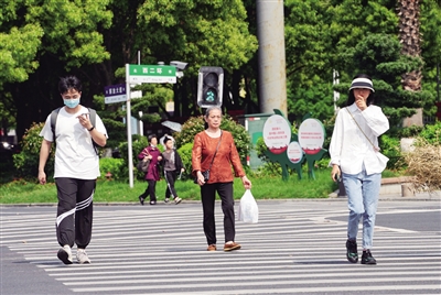 4月17日,在我市城区街头,行人身着夏装出行。连日来,衡阳气温开始大幅度提升,当日最高气温达32℃,市民纷纷身着夏装清凉出行。 ■见习记者 颜艳妮 实习生 周继晋 摄