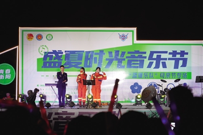 5月14日晚,在高新区濂溪公园蒸水河畔,由共青团衡阳市委主办的青春四季系列活动“盛夏时光音乐节”之“蓝雁乐队”母亲节专场演出活力开唱。不少市民相约河畔,一同享受这场视听盛宴。■衡阳晚报全媒体记者 张志伟 摄
