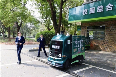 早在2022年10月1日,珠晖区邮政分公司驻湖南工学院的快递服务站就开始使用无人驾驶车进行快递投递,这在全省快递业内属于率先试水,让“象牙塔”里的大学生大开眼界,更有了一种别样的自豪感。
