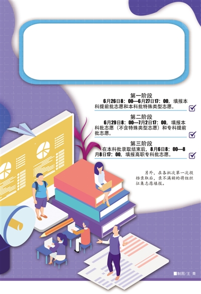 志愿填报将从6月26日开始,分3个阶段进行