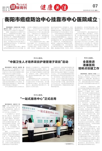 衡阳市癌症防治中心挂靠市中心医院成立