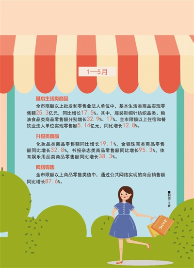 前5月,全市实现社会消费品零售总额756.9亿元,同比增长5%