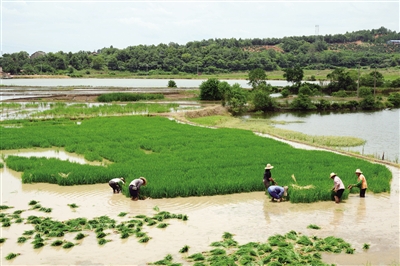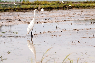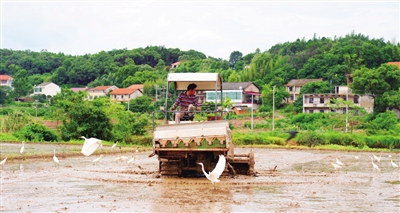 7月4日,衡南县咸塘镇高桥村水田里,农机来回穿梭,农民忙着抢插一季稻,成群的白鹭则围在四周觅食、嬉戏,呈现出人与自然和谐共处的美丽乡村画卷。 ■衡阳晚报全媒体记者 谢小青 摄