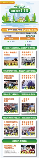经济半年报出炉,如何评价我国上半年经济表现?付凌晖认为,今年经济社会全面恢复常态化运行后,前期受疫情影响较大的消费和服务业复苏加快,明显对经济增长带动作用增强。上半年GDP同比增长5.5%,二季度GDP同比增长6.3%,增速都明显快于去年全年3%的经济增速以及疫情三年4.5%的年均经济增速,经济回升态势明显。