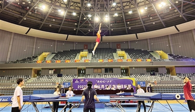衡阳晚报讯 (文/图 全媒体记者 伍施施 通讯员 蒋铭铭) 7月26日上午,“奔跑吧·少年”2023 年湖南省青少年蹦床锦标赛在市体育中心举行,全省共7支队伍、140名蹦床运动员参赛上演一场精彩绝伦的“空中芭蕾”赛。