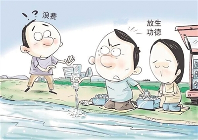 可以说,将可以饮用的矿泉水倒进水库,不仅白白地浪费了水资源和金钱,也积不了德行不了善。因为“放生”矿泉水背离了科学,也与现代文明格格不入。其实用矿泉水积德行善很容易做到,如:将这些矿泉水放在爱心救助站等地方,供人拿取饮用,或者捐赠给需要的人群和单位,让矿泉水“物尽其用”,比“放生”矿泉水更有意义。可以说“放生”矿泉水不是善举而是无知,更是对放生的亵渎。