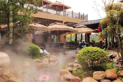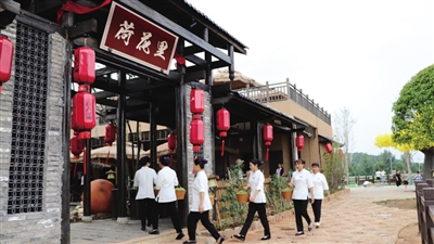 在荷花里,我还发现一个迷人的庭院。庭院被绿树和花草环绕,有着别致的装饰和精心布置的景观。在这里,我品味着传统的家乡美食,烹饪着一席花肴。美食的香气扑鼻而来,令人食指大动。这是一种追寻质朴且悠然的乡野时光的享受,让内心得到愉悦和满足。
