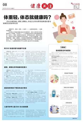 ~~~BMI(体重指数)、腰围、腰臀比、体成分分析结果等是衡量体重与健康状况的参考标准