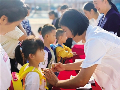 高新区阳光小学是今年全新启航的公办小学,昨天上午迎来了第一批新生报到。该校设置了走红毯、进拱门、梦想打卡、击鼓明志等环节,一下子就让孩子找到了小主人的感觉。