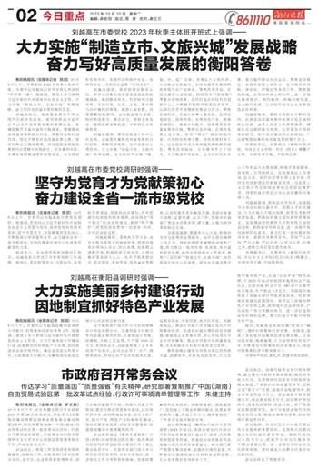 大力实施“制造立市、文旅兴城”发展战略 奋力写好高质量发展的衡阳答卷