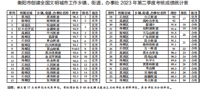附件:衡阳市创建全国文明城市工作乡镇、街道、办事处2023年第二季度考核成绩统计表