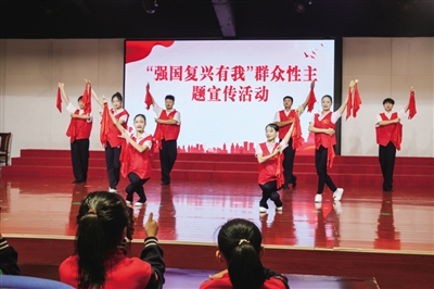 活动在古典舞蹈《九州欢腾》中拉开序幕,舞蹈融合太极、武术等元素,充分展示了中国传统艺术“礼乐一体、互通兼容”的特性;歌曲《孤勇者》《我的中国心》以高亢的旋律、动人的歌声感染着现场的小记者们;汉唐舞《相和歌》考据严谨、刚柔并济,把大家瞬间带到了两千年前那个和鼓和乐、载歌载舞的壮美时代;《川剧变脸》在稍纵即逝间,通过不同脸谱表达不同人物的心理变化,让人看得如痴如醉;舞蹈《皮影·传承》配以打击乐器和弦乐,生动演绎那些家喻户晓的历史故事;衡阳丝弦《摘黄花》说唱穿插交替、婉转缠绵、感人动听,让小记者们见证了衡阳民间艺术珍宝;音乐快板《高举旗帜迈步新征程》寓教于乐,传递了党的二十大精神,小记者们从中感悟到信仰的力量。