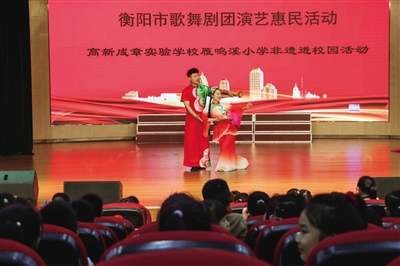 衡阳晚报讯(文/李境 图/林闽) 10月9日至10日,由本报小记者俱乐部、衡阳市歌舞剧团联合主办的“强国复兴有我”群众性主题宣传活动暨“非遗进校园”活动先后在蒸水小学、高新成章实验学校雁鸣溪小学举行。两校《衡阳晚报》小记者近距离体验、感受非遗的独特魅力。此次活动的主题为“多彩‘非遗’进校园 落实‘双减’促传承”。