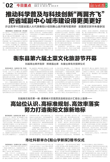 许达哲指出,衡阳文化底蕴深厚,工业基础雄厚,科技创新持续夯实制造业根基,高质量发展取得了可喜的成就。下阶段,衡阳各级党委政府要进一步深入学习贯彻习近平总书记关于科技自立自强的重要论述,抓好人才队伍建设,做好科普教育,提高全社会研发投入强度,推动科学普及与科技创新“两翼齐飞”;进一步强化企业科技创新主体地位,大力扶持高新技术企业发展,培育更多“专精特新”企业,发挥龙头企业链长优势,积极承担国家科技攻关课题,加快解决“卡脖子”问题,为我国实现高水平科技自立自强不断作出新的贡献。各位代表要依法勤勉履职,密切联系群众,厚植家乡情怀,立足本职工作为衡阳发展多做贡献,共同把省域副中心城市建设得更美更好。
