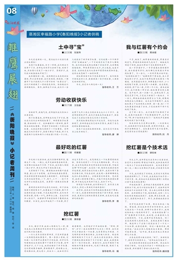 我和谢依妍一组,我俩都是从来没挖过红薯的,所以没有经验。我们东挖挖、西挖挖,一顿操作下来只挖到几个小得可怜的“红薯宝宝”。我们只好请教了一旁的农民伯伯,伯伯教我们要顺藤找瓜。果然,按照这个方法,我们不一会儿就挖出了好多好多红薯。它们就像一个个胖乎乎的“宝藏娃娃”,一下子就吸引来了很多人围观呢。我们的这些成果也刺激了其他同学,大家都越挖越起劲。即使累得满头大汗,手上起泡,也毫不在意。这些就是我们从劳动中获得的收获和惊喜,这些让我忽略了一切苦和累。