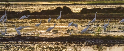 来到耒水国家湿地公园的核心保护区,里面栖息着白鹭、苍鹭、牛背鹭、野鸡、山鹊、白鹤、鹌鹑、环头雉等两百多种鸟类,它们飞时舞姿翩翩,栖时繁星点点,数量更是高达数万只,由此被称为“鸟类的天堂”。
