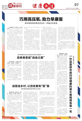 ~~~南华医院高压氧成功治疗一例脑出血患者
